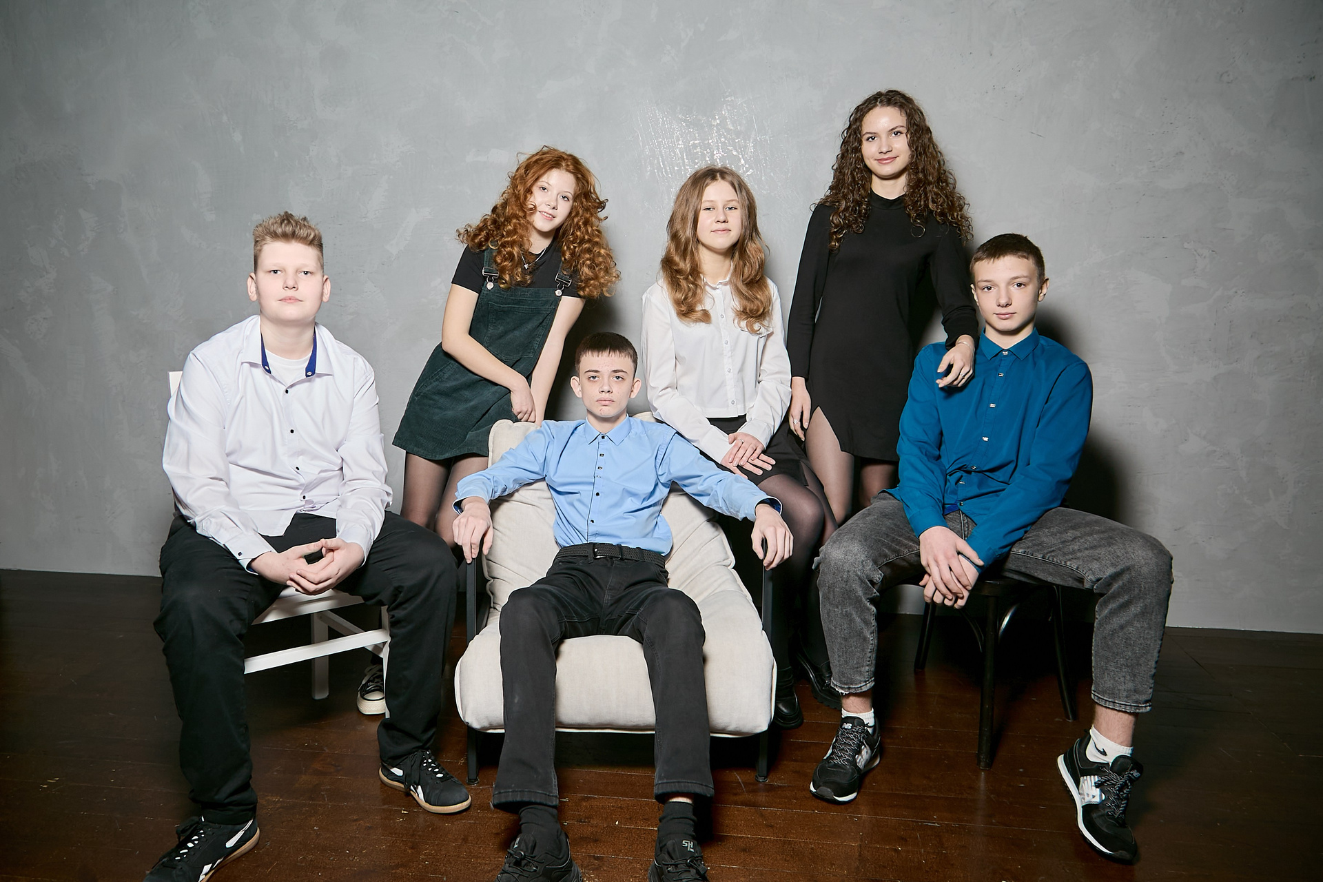 Администрация не разрешила съёмку в школе — но это не стало проблемой. Вместо привычных кабинетов ребята пришли в студию, где всё продумано для школьной тематики. Один день, один класс, и готовый альбом «Стандарт» — с портретами, общими фото и атмосферой дружбы.